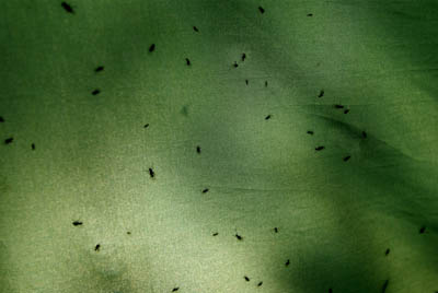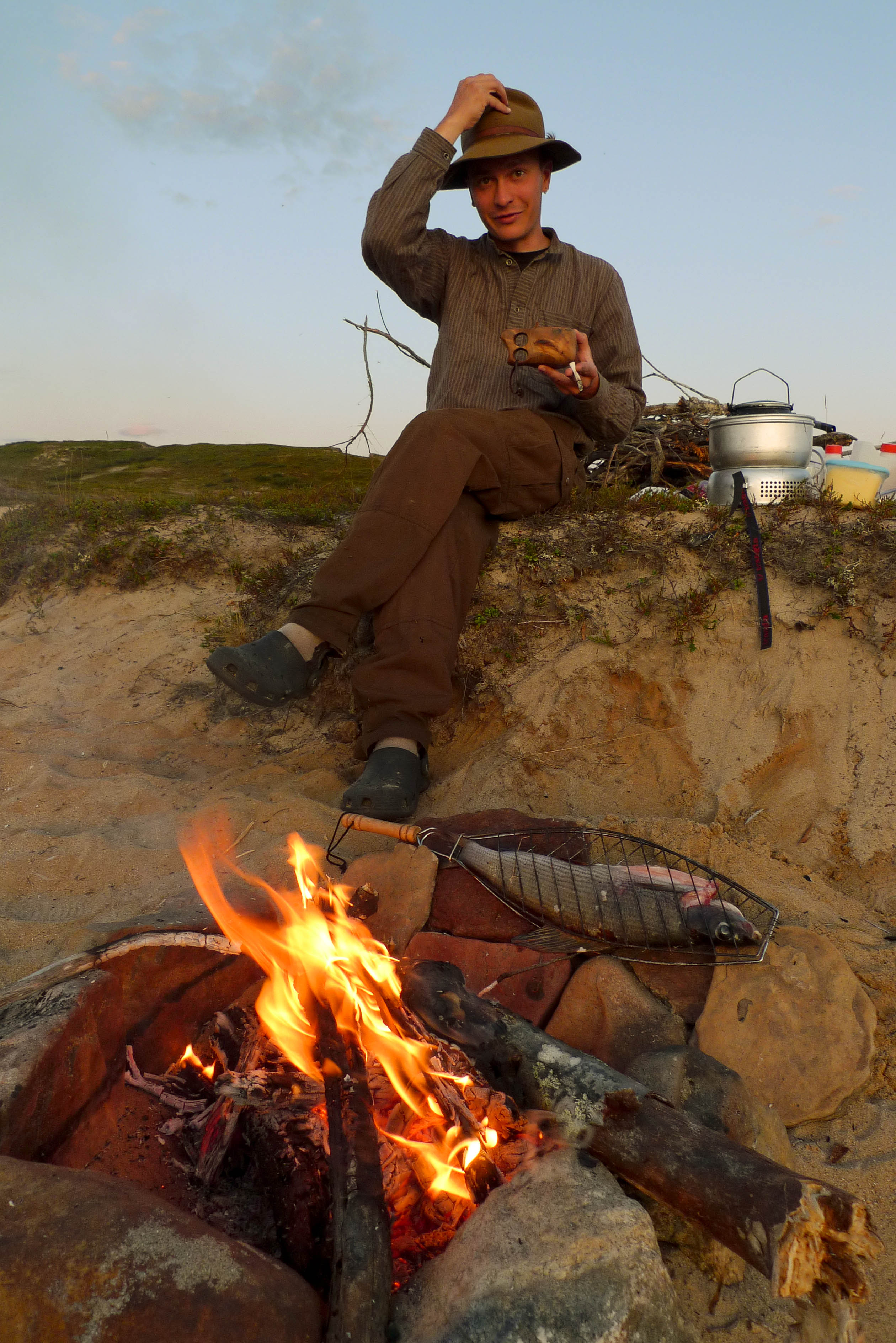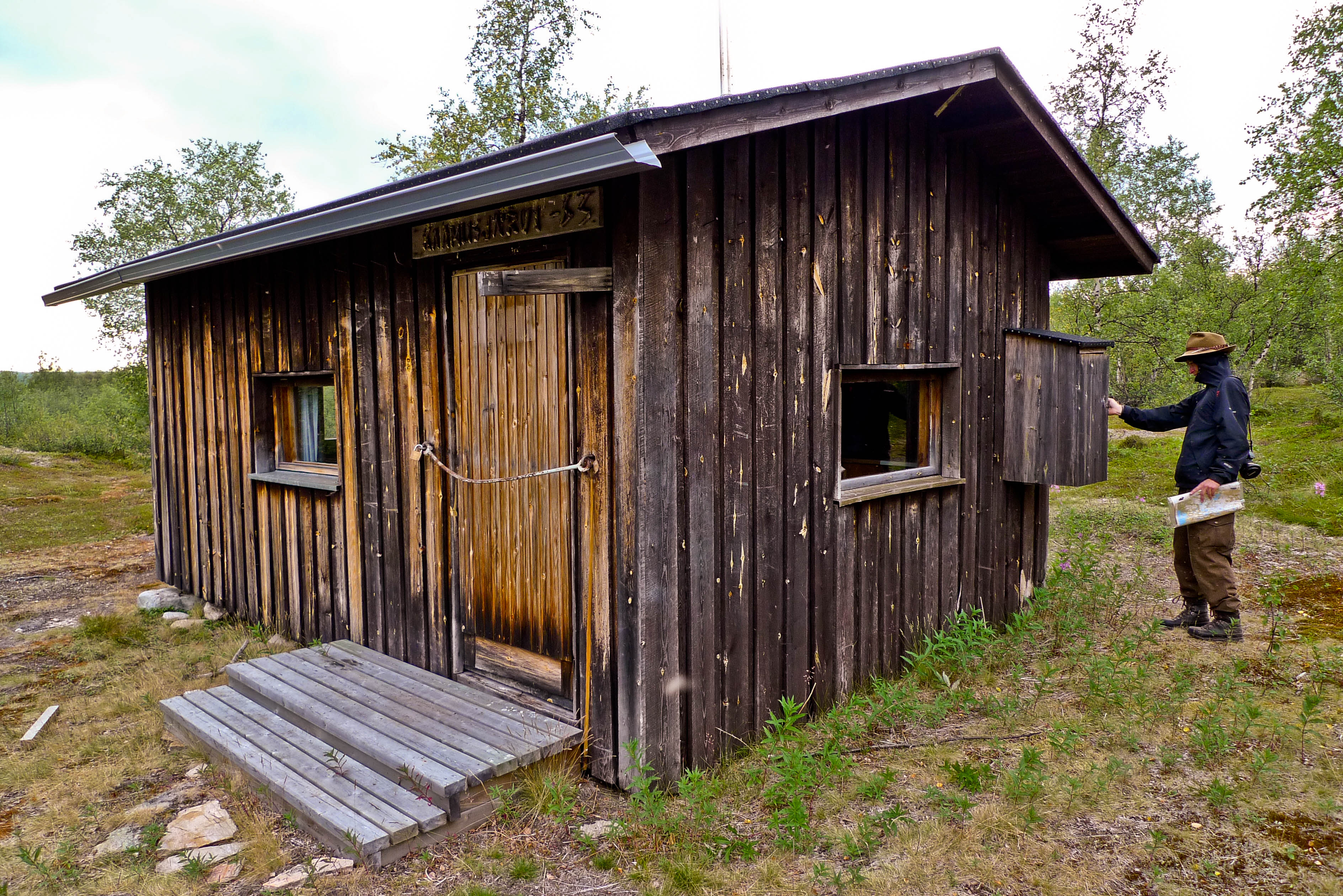 Käymme katsomassa viereisen pikkujärven rannalla olevaa vanhaa rajavartioston tupaa. Jäven pohjoispuolella on helvetillinen pajukko, jossa on jäänteitä pitkospuista. Tupa on tiukasti on lukossa eikä tarjoa edes hetkellistä suojaa ympärillä pörrääviltä viheliäisiltä otuksilta. Perhostelen järvessä tuloksetta. Palaamme takaisin etelän puolelta. On iltapalan aika. Yritämme saada ruokarauhan nuotion avulla. Itikat eivät savusta piittaa ja ravintoketju sulkeutuu, itikat syövät meitä ja me niitä. Emme olleet varautuneet tällaiseen. Toivomme viileää tuulahdusta järveltä, mutta illan hämäryys vie vähäisetkin tuulen rippeet mennessään ja lämpötila pysyy korkealla. Sinnittelemme tulen ääressä puoleen yöhön ja huiskimme otuksia. Ne syövät sukkien läpi nilkkamme kirjaviksi. Myös käsivarret saavat osansa ennenkuin tajuamme, että takki on vedettävä päälle tuskaisesta kuumuudesta huolimatta. Vetäydymme yöpuulle odottamaan viileää aamua. Mitään merkittävää viilennystä ei kuitenkaan tule ja herään aamulla avonaisen makuupussin päältä.