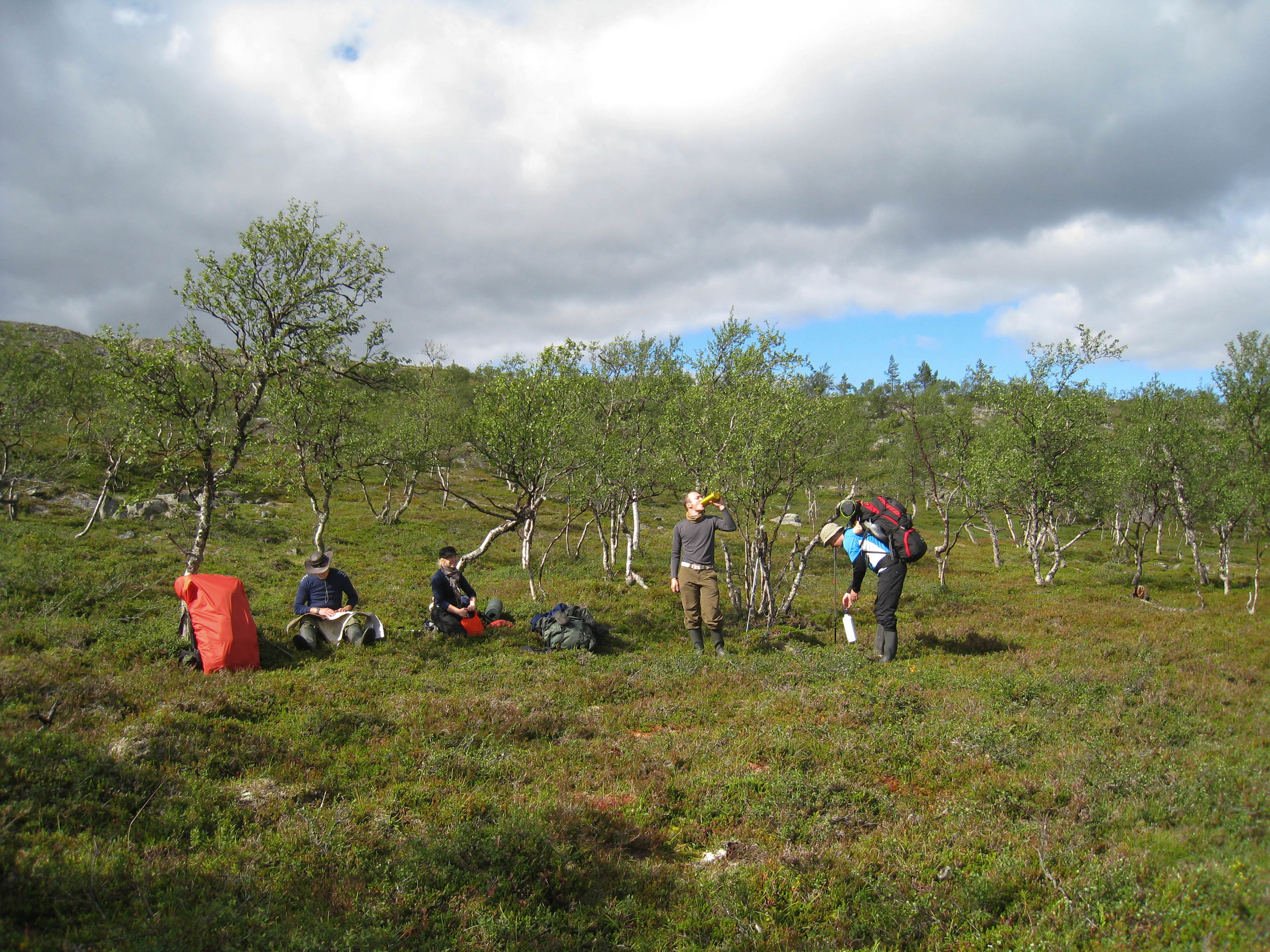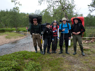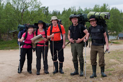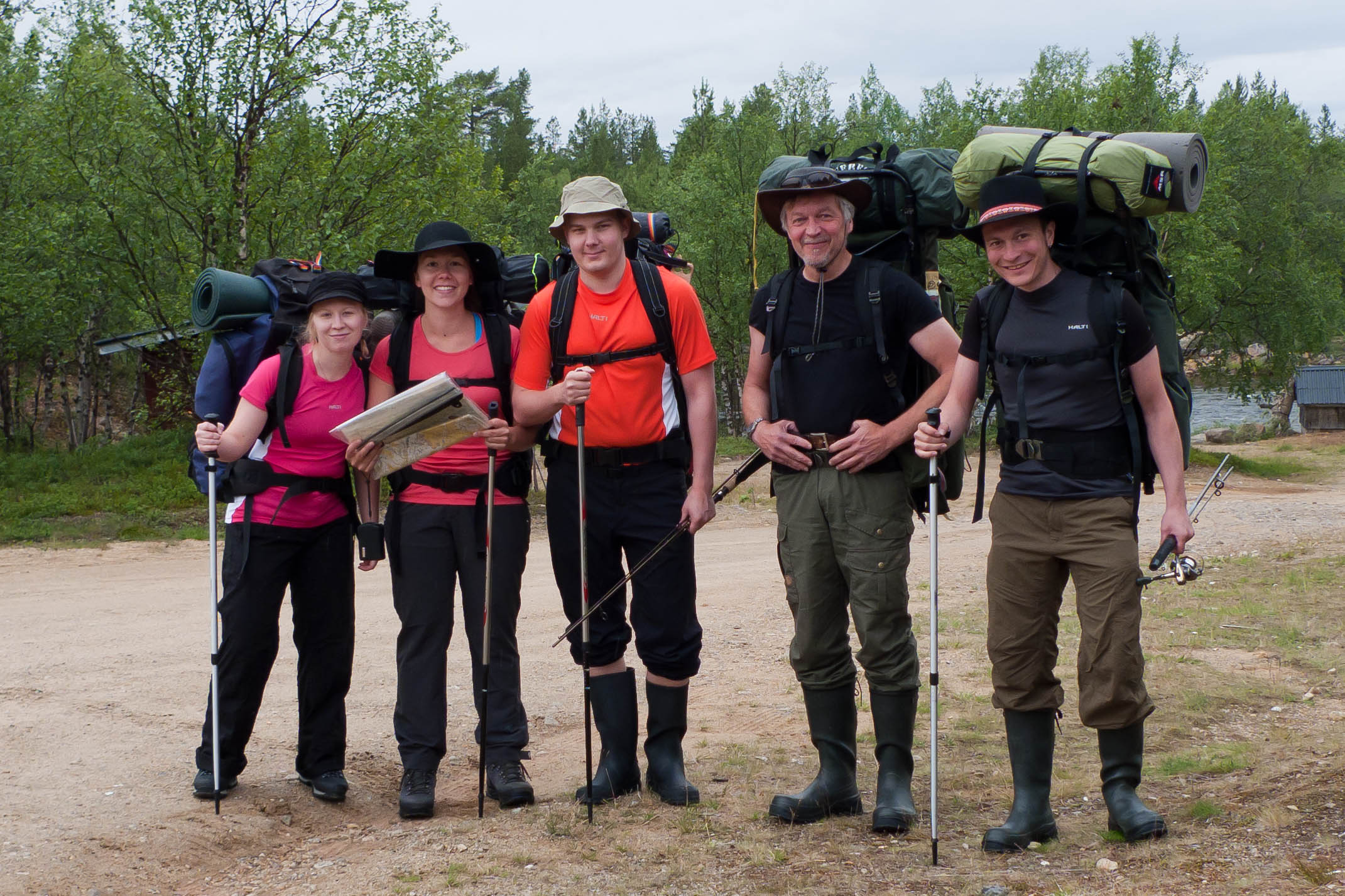 Muotkatuntureilla mukana Pekka (kertoja), Juho, Aino ja Eeva Malmi sekä Lauri Junkkari. Olemme vaellelleet Juhon kanssa vuodesta 2004 lähtien vuosittain eri puolilla Suomen lappia. Nyt meillä on kolme ensikertalaista matkassa. Jännitys väreilee ilmassa hieman tavallista enemmän. Matka suunniteltiin tavallista huolellisemmin. Katsottiin, että kaikilla on sellaiset varusteet, joilla pärjää vähän huonommassakin kelissä. Tehtiin oikein varustelista, jossa jokaisen varusteet on kuvailtu painoineen päivineen. Kulutushyöhykkeet laitettiin omaan sarakkeeseen, josta niitä sitten jaeltiin siten, että kaikille tuli omaan painoon ja kokemukseen nähden sopiva taakka. Alunperin oli tarkoitus olla kuusi yötä erämaassa, mutta juna-aikataulujen vuoksi jouduttiin supistamaan viiteen yöhön. Matkaan lähdettiin Turusta autojunalla 4.8.2012 klo 21.05. Kia Ceed'iin oli lastattu viiden ihmisen varusteet ja Rovaniemellä klo 10.48 edessä 400 km:n matka melko täyteen ahdetussa autossa. Aamukahvit napapiirin Shellillä, "viimeinen ateria" hotelli Inarissa. Pizzat olivat niin runsastäytteisiä, että loput nautittiin vasta illalla erämaassa. Kaljaa ei kuitenkaan otettu mukaan. Illalla puoli kuuden maissa oltiin Kiellatuvalla, josta oli varattu majoitus paluupäiväksi. Kuuden maissa oli varusteet päällä ja into piukassa.