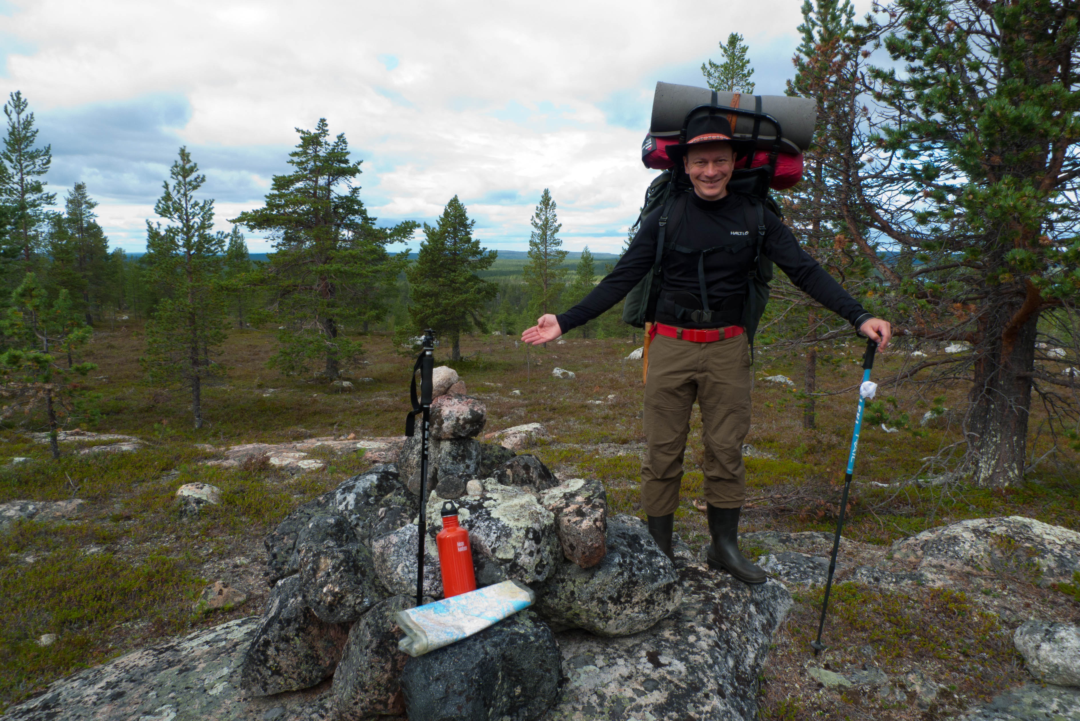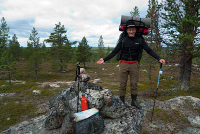 Aamulla oli pilvipoutaa ja vähän tuulta, oikein hyvä vaellussää. Tarkoitus olisi käydä Tuulipäällä ja ruveta katsastamaan leiripaikkaa pieniltä järviltä sen kaakkoispuolella. Suunnisteltiin huolettomasti järviä ja soita hyväksi käyttäen. Mäntymetsän siimeksessä kierreltiin rakkaisia mäkiä ja välillä oltiin vähän eksyksissäkin. Ensimmäinen tauko pidettiin Pahtavaaran länsipuolella olevalla nimettömällä pikkujärvellä, jossa on saari. Matka jatkui Pahtavaaralle, mutta jostain syystä lähdettiin koilliseen, vaikka olisi pitänyt suunnata itään. Mutkien kautta löydettiin huipulle, jossa oli oikein kivikasa. Etelärinne oli melko jyrkkä ja tarjosi hienon näkymän Pahtalammelle. Pahtavaaralta jatkettiin melko suoraviivaisesti itään ja arvailtiin vastaan tulevista järvistä sijaintiamme. Noin puolimatkasta osuttiin niin hienolle järvelle, että päätettiin pitää kunnon tauko, riisua saappaat, tehdä sapuskaa ja keittää kahvit. Ilmakin olin niin hieno, että olisi tehnyt mieli jäädä siihen yöksi, vaan kun oli päätetty käydä yhdessä sun toisessa paikassa, piti jatkaa eteenpäin. Seuraavaksi Tuulipäälle siten, että rinkat jätetään Kolmosenjärven koillisnurkkaan ja siitä kevyemmillä kantamuksilla huipulle. Hauska yhteensattuma, että juuri Tuulipäällä oli täysin tyyntä, vähän niinkuin ukkosen haudetta, vaikka mitään ukkospilviä ei ollut näköpiirissä. Sieltä oli näkymä mm. Tuulijärvelle ja oliskohan Rovijärvelle?. Alas tullessa aukesi näkymä karulle pikkujärvelle. Kartassa järven saaret ovat metsää ja ympäristö paljakkaa. Huiputuksen jälkeen matka jatkui Kallopäätä kohti samalla tutkaillen mahdollisia leiripaikkoja vastaan tulevien järvien rannoilta. Pikkujärvet olivat matalia ja rannat hirveetä louhikkoa. Lopulta Ylimmäisen Aittajärven itäpuolelta löytyi niemi, jossa oli tasan yksi kelvollinen teltan paikka. Leiriytymisen ja muonituksen jälkeen kasattiin kalavehkeet. Joitain pieniä tuikkeja alkoi ilmetä illan hämärtyessä, mutta saaliiksi saatiin vain kaksi komeaa ahventa uistimella. Jotain poltettavaakin löyty, niin että saatiin abborit halstrattua. Pimeyden jo laskeuduttua putkahti Kallopään takaa näkyviin kirkas piste. Kun ei valosaastettakaan liiemmälti ollut, se näytti niin suurelta, että ensin tuli mieleen lentokone tai joku tuntematon lentävä esine. Tasainen liike n. 15 astetta tunnissa sai meidät uskomaan, että kyseessä oli kuitenkin vaan iltatähti.