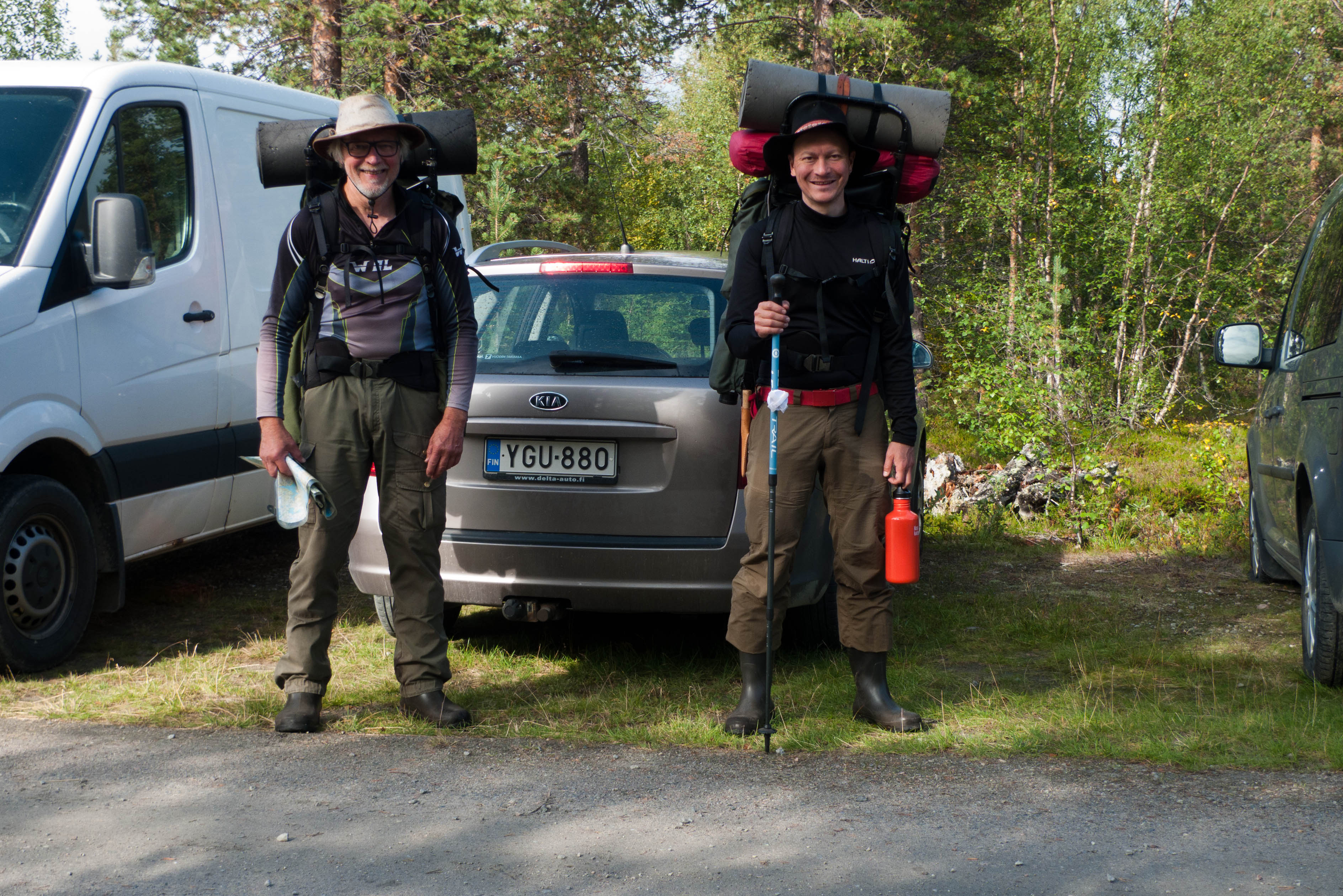 Edellisestä Vätsärin reissusta oli vierähtänyt jo kymmenen vuotta ja vähintään toinen puoli erämaasta oli vielä näkemättä. Vätsäri on sopiva sekoitus metsää ja paljakkaa. Kun reissu siirtyi aika myöhäiseen ajankohtaan, on hyvä olla vähän tervastakin nuotiopuiksi. Vätsärissä on paljon järviä ja lampia, joissa saa kalastaa ihan tavallisella koko valtakunnan kattavalla vieheluvalla. Ajateltiin kuitenkin tukea kalaston hoitoa ja ostaa virtavesiluvat, mutta yllätys yllätys, luvat oli myyty loppuun. Tämä oli ensimmäinen kerta, kun näin tapahtui. Oli vaikea tajuta, että jokavuotinen kahden vuosiluvan eli sadan euron lahjoitus kalastuksen hoitoon ei ollutkaan mahdollista. Toinen yllätys oli, että juuri sinä päivänä, kun oltiin lähdössä, ei autojunia lähtenytkään Turusta, vaan auto piti ajaa Tampereelle lastattavaksi. Matkaan lähdettiin sunnuntaina 15.8.2021, niin että ehdittiin Tampereelle 20:30 mennessä. Se etu tässä oli, että juna saapui Rovaniemelle jo puoli kahdeksalta, kun Turusta lähtevä juna on siellä vasta yhdentoista maissa. Lähdettiin kohti pohjoista syötiin viimeinen ateria Hotelli Inarissa yhden maissa. Matka jatkui kohti Sevettijärveä, jossa vähän ennen Nilijoen ylittävää siltaa käännyttiin oikealle Sollomuslompoloon johtavalle tielle, joka päättyi n. viiden kilometrin päässä valtavalle poroerotuspaikalle. Siellä oli varmaan parikymmentä autoa, joiden olettaisin olleen enimmäkseen vaellusturistien kulkupelejä. Tuli sellainen olo, että nyt on ruuhkaa erämaassa. Pelko osoittautui kuitenkin turhaksi. Viikon aikana nähtiin tai kuultiin vain kolme seuruetta ja niistäkin vain yhden kanssa oltiin juttusilla.