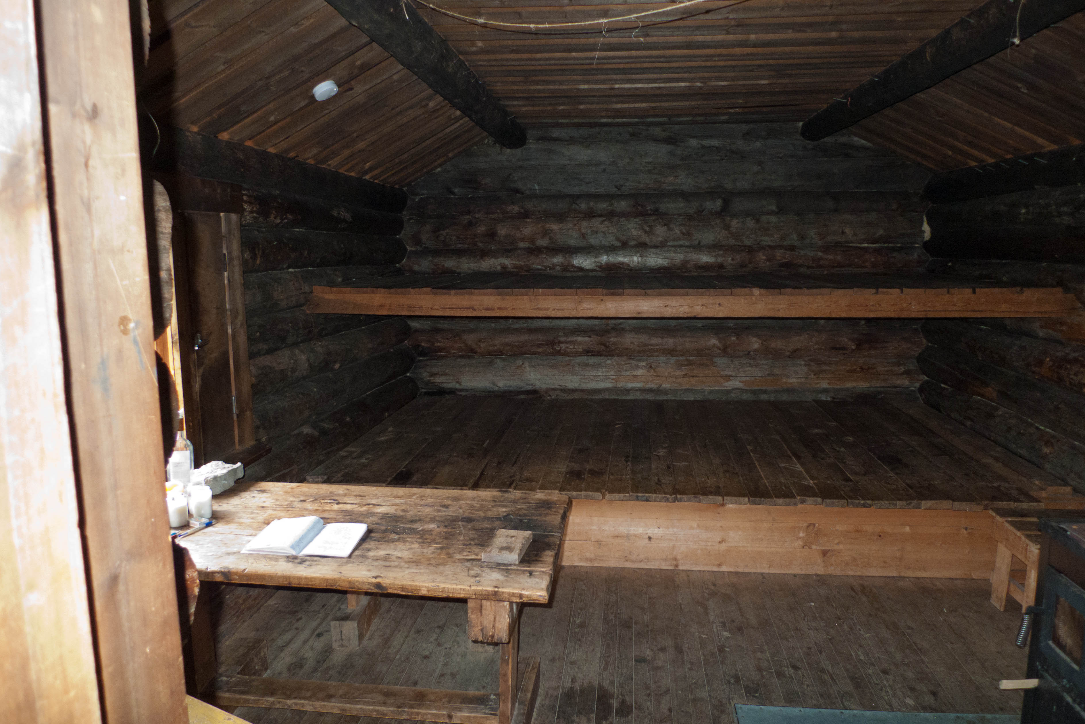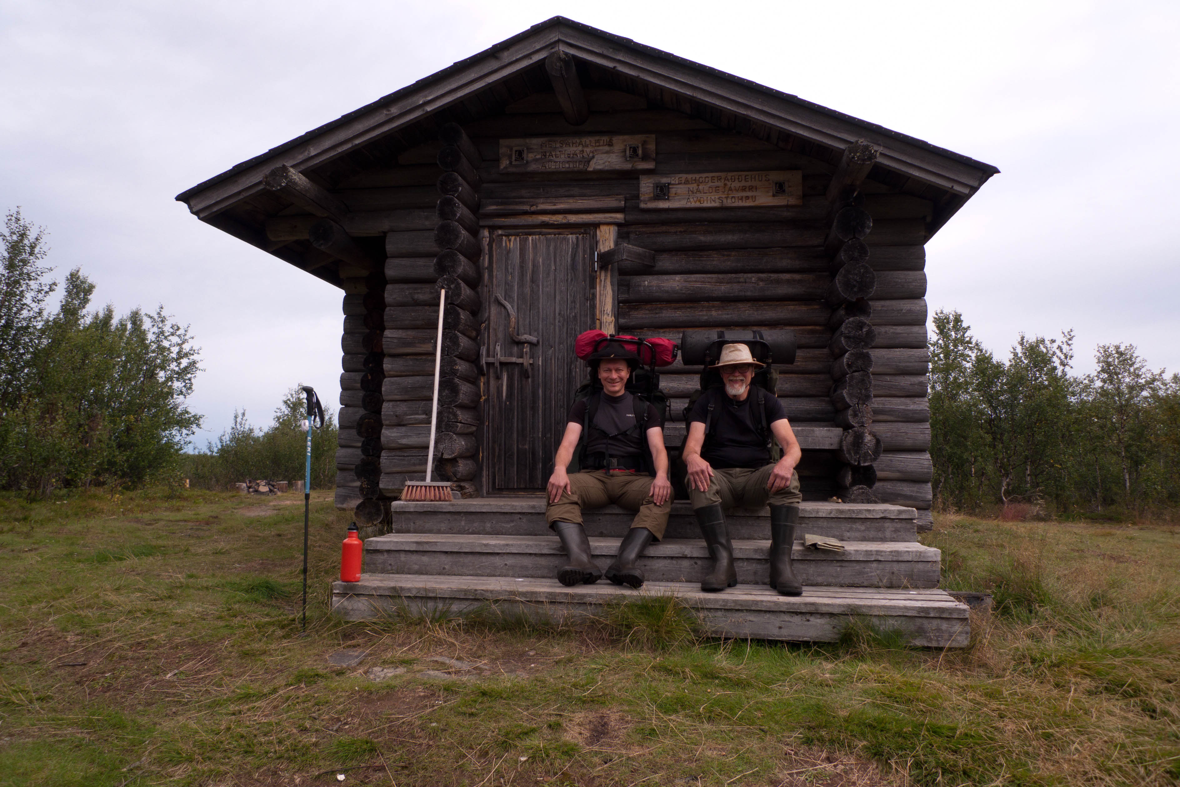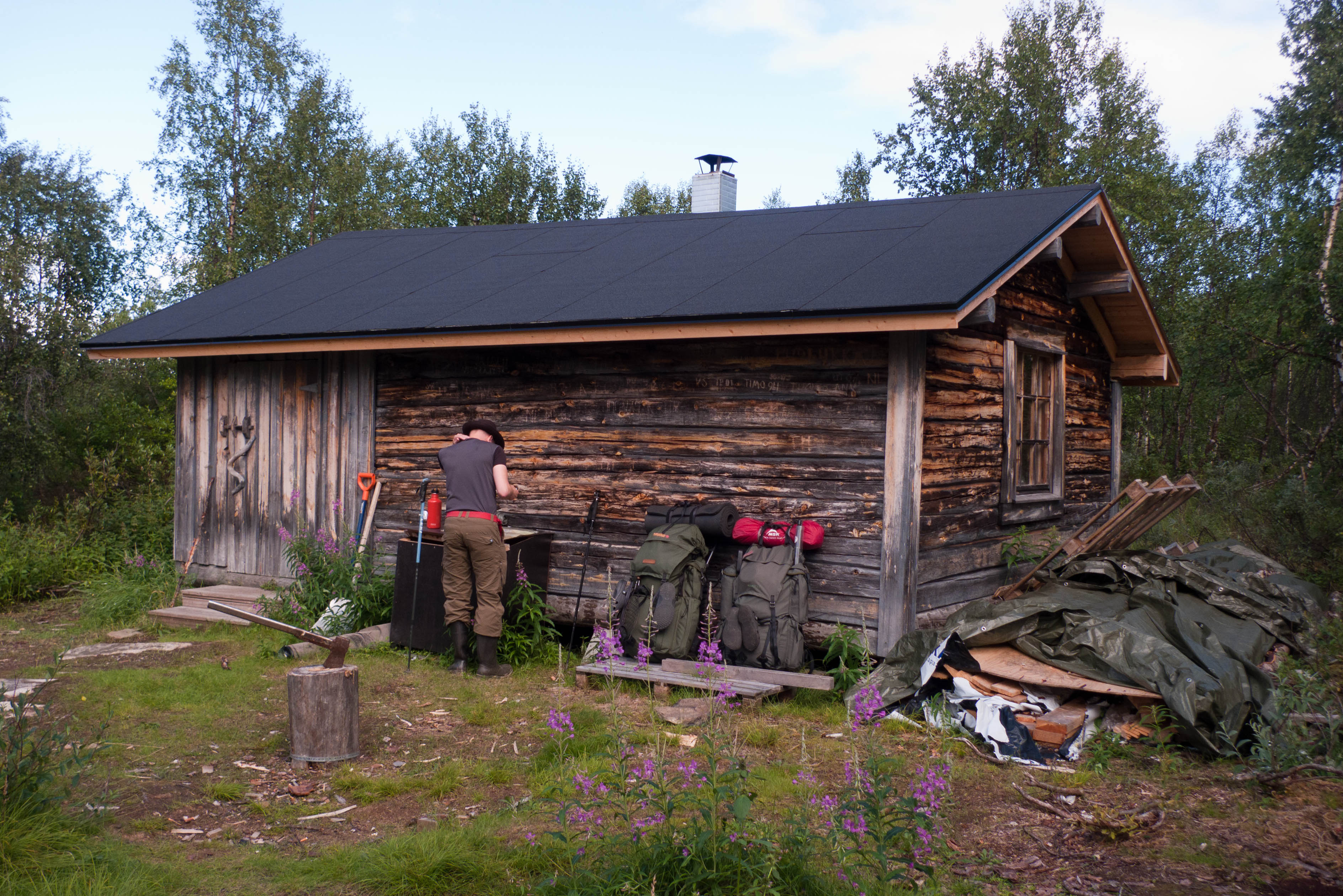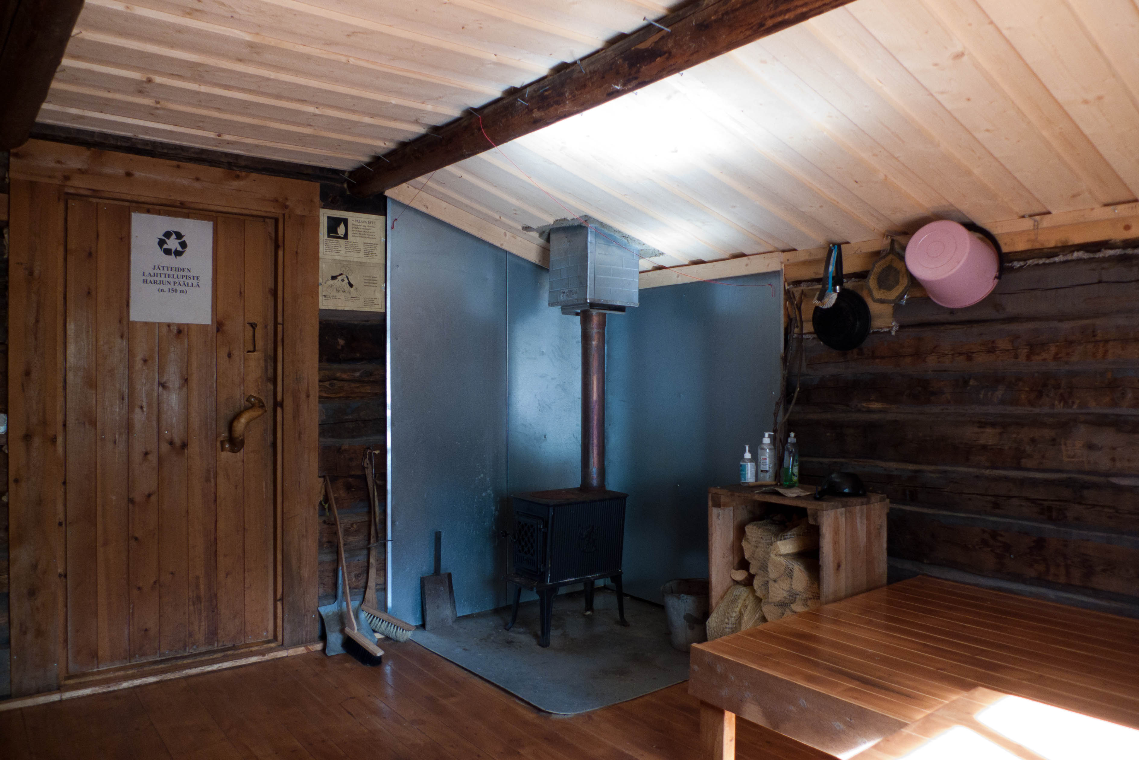 Auto hyvästeltiin puoli kolmen maissa. Siinä sitten käveltiin ensimmäinen puolitoista kilometriä autotietä pitkin kääntöpaikalle, jossa oli parkissa samanlaisia perus-henkilöautoja. No, kävelemään tänne on tultu. Kävimme tsekkaamassa Kalmankaltion autiotuvan, jossa olikin tehty vähän isompi remontti. Oli uusi eteinen ja sisätilat oli saaneet uutta pintaa. Oli myös uusi huusi ja puuvaja. Sikäli omituista, että erämaassa rakennetaan vessoja miehille ja naisille samaan aikaan, kun kaupungissa ollaan siirtymässä unisex-vessoihin. Muuten näytti kokolailla valmiilta, mutta rakennusjätteitä lojui vielä nurkissa. Autiotuvalta eteenpäin saatiin tallustella pitkin tukevaa mönkkäriuraa. Matkalla tutkiskeltiin reitin varrella olevia järviä. Pieni pettymys oli, että nämä hiekkakuopat olivat melko ruohikkoisia. Jossain vaiheessa tultiin Kurkkioharjuille, joka oli samanlaista hiekkaerämaata, mitä saatiin ihailla auton ikkunoista. Tai oikeastaan se oli ohuen kasvillisuuskerroksen peittämää hiekkaa, josta paistoi siellä täällä paljaita hiekkaplänttejä. Alue on taatusti herkkää eroosiolle, mutta ihme kyllä mönkkärillä oli maltettu kulkea samaa uraa pitkin. Loppujen lopuksi päätettiin lompsia Naltijärven autiotuvalle asti, vaikka Salmijärvien kohdalla alkoi jo tuntua siltä, että tähänkin voisi jäädä. Tupa edusti vanhaa arkkitehtuuria yhtenäisine ala- ja ylälauteineen, tiukan paikan tullen vaikka kymmenelle yöpyjälle. Kun ei paikalle ilmestynyt muita retkeilijöitä, nostettiin rinkatkin sisälle. Vilkaisu rantaan herätti suuria toiveita. Siellä oli isojen harjusten perkuujätteitä. Aika pitkään kalasteltiin järvessä ja sen alapuolella Käkkälöjoessa, mutta mitään syötävän kokoista kalaa ei saatu.