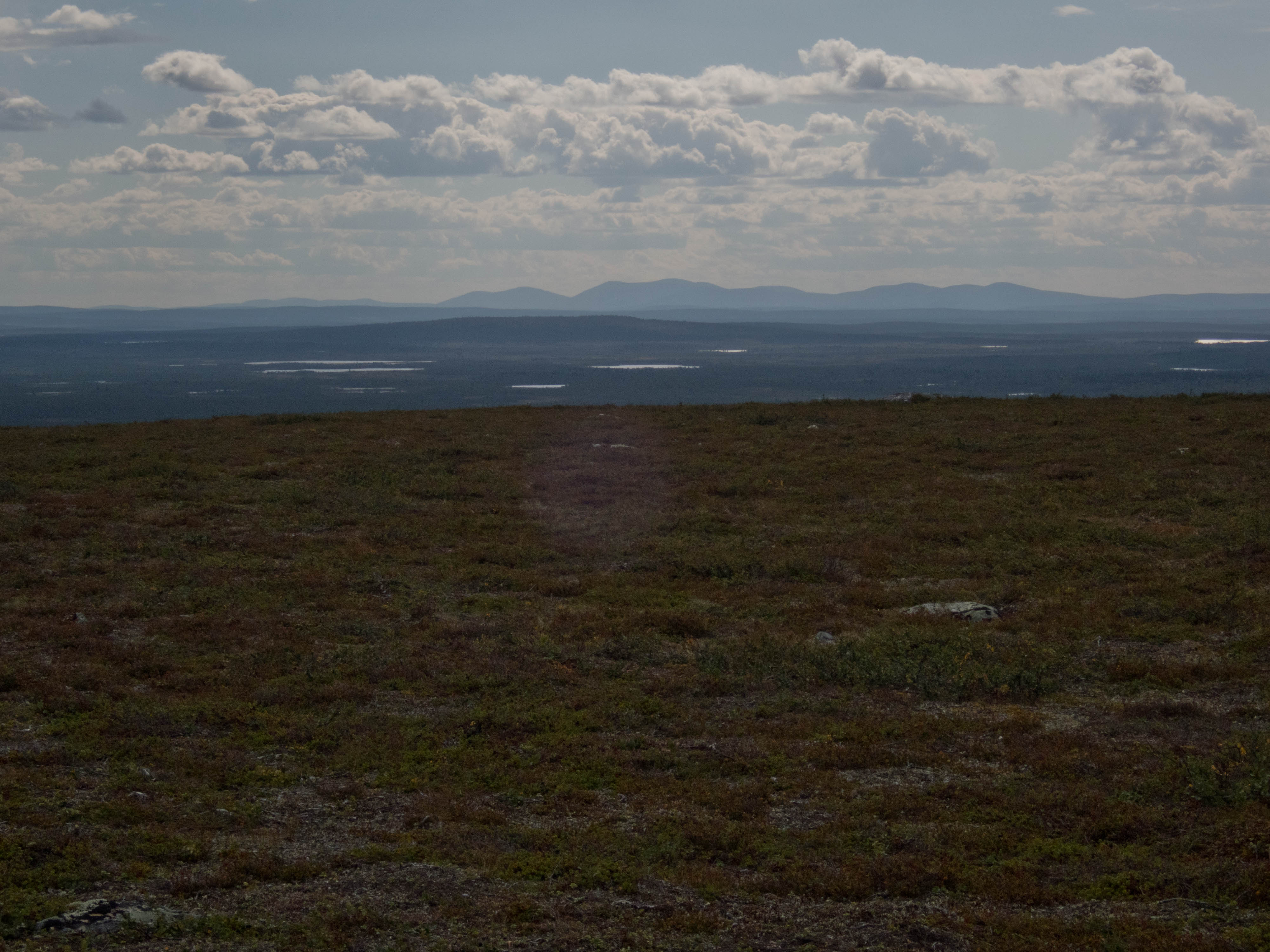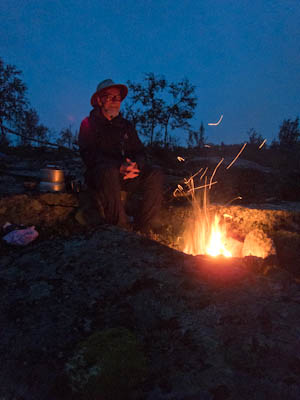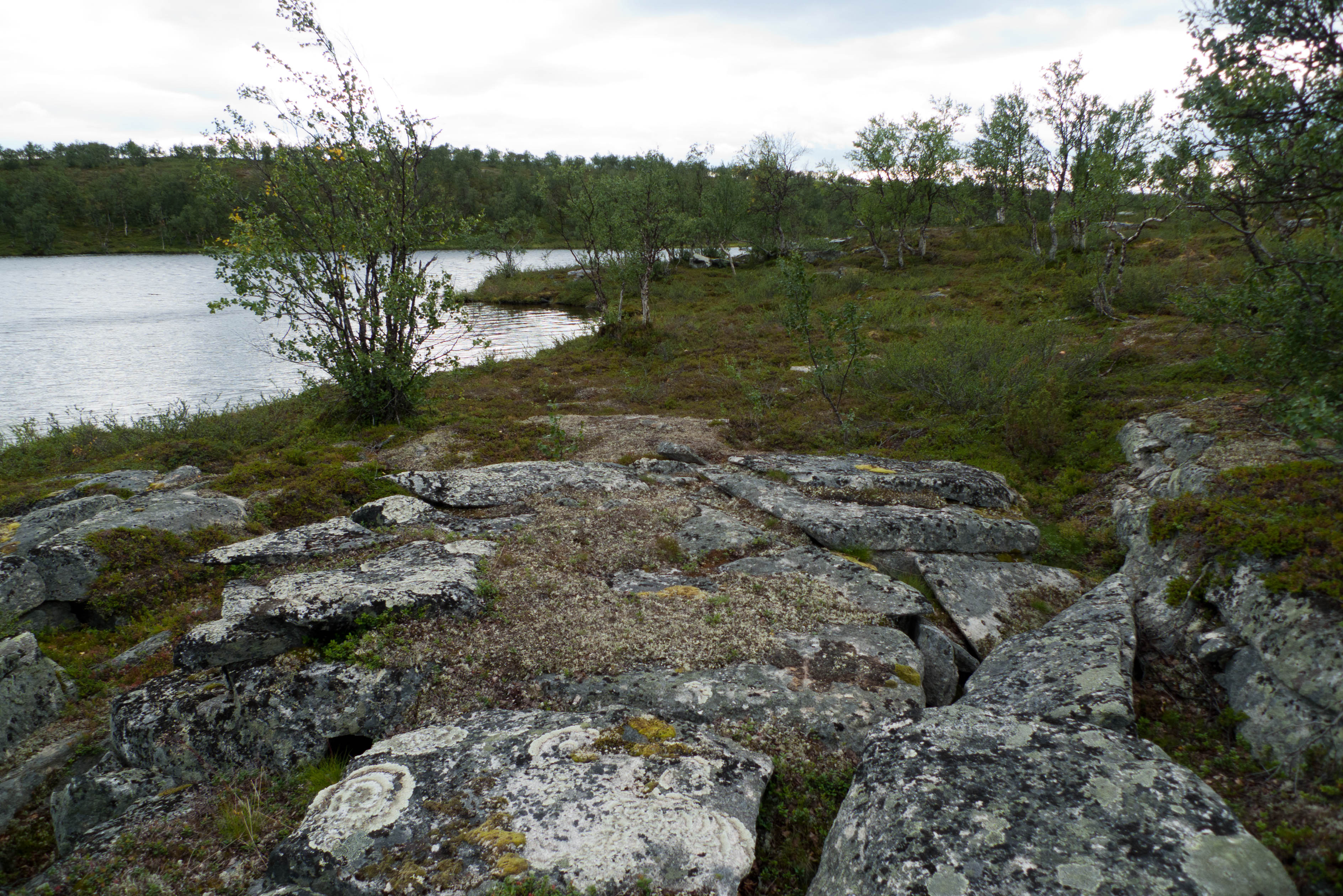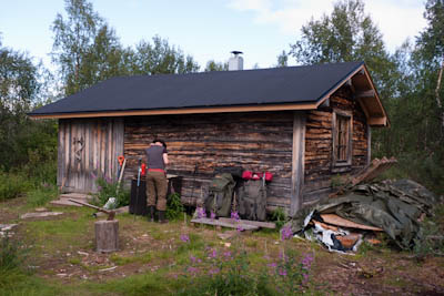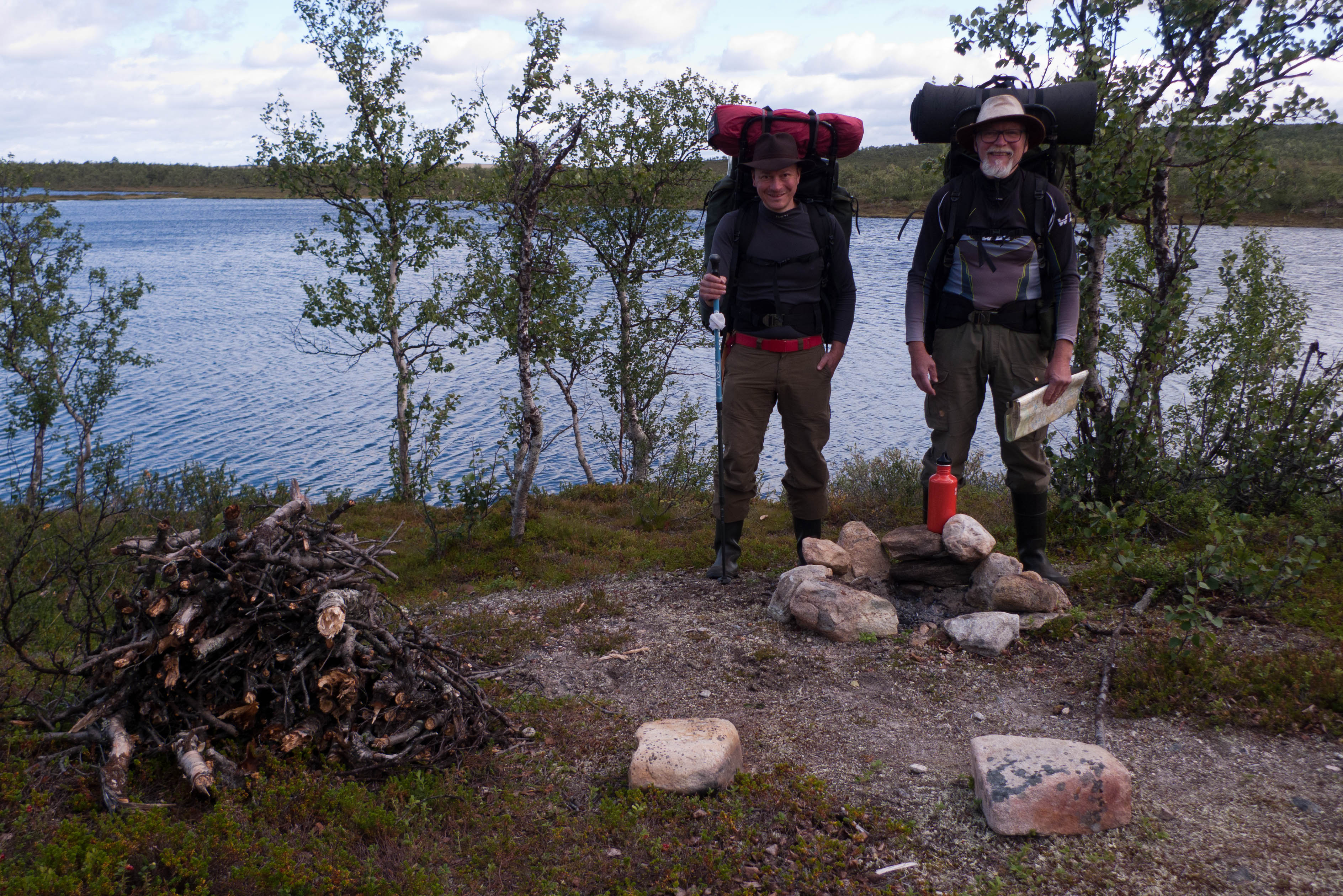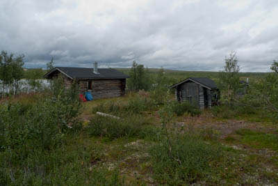 Vanha sanonta iltaruskosta osoittautui oikeaksi. Päivä valkeni sen verran harmaana, että lähdettiin liikkeelle sadevarusteissa. Suunnitelmissa oli tehdä leiri johonkin Suukisvaaran lähistölle, josta sitten voitaisiin käydä huiputtamassa seuraavana päivänä. Matkalla avautui näkymä kunnioitusta herättävälle tunturijonolle kaukaisuudessa. Päätimme poiketa Lenkihaan autiotuvalle ruokaa laittamaan. Siistissä kunnossa oli tämäkin tupa. Vanhat kunnon lauteet. Mistä johtunee, että tupien edustalla kasvaa melkein aina maitohorsmaa, jota ei maastossa juuri muuten ole. Johtuneeko siitä, että portailta on heitetty aikojen saatossa paljon ravinteita tuvan edustalle. Ilmakuvan perusteella tuvan edustalla oleva järvi on melkoinen rutakko ja siltä se näyttää luonnossakin. Sai siitä kuitenkin ihan hyvää vettä ruuan laittoon. Tuvalta matka jatkui soita väistellen kohti Allavaraksen eteläpuolella olevaa järveä, avokallioalueen vieressä. Molemmista Aiteenjoen alkuhaaroista päästiin yli saappaat jalassa. Patavaaran ja Allavaraksen rinteillä kasvoi paljon mustikkaa, marjoja parhaimmillaan. Vastatuuli hidasti matkantekoa. Heti, kun löysimme edes vähäisen suojan lounaistuulelta, istahdimme mässäilemään mustikoita. Yhdeltä istumalta sai melkein vatsan täyteen. Kun jatkoimme Allavaraksen länsipuolta alaspäin kohti järveä, olimme vähän ihmeissämme. Järvi näytti olevan paljon kauempana kuin kuvittelimme. Pian kuitenkin selvisi, että meidän järvemme oli aikamoisessa kuopassa ja ilmestyi näkyviin vasta loppujyrkällä. Maasto oli aika vaikeakulkuista ja avokalliot jatkuivat paikoitellen rantaan asti. Nuotiokin tehtiin kallion koloon. Kuin ihmeen kaupalla löysimme kelvollisen teltan paikan läheltä rantaa. Ilta oli tuulinen. Yhtään tuikkia ei nähty edes vastarannan tyvenessä. Yksi ärhäkkä hauki otti perhoon. Sekin vapautettiin, vaikka olisi ollut juuri sopivan kokoinen tikkukalaksi. Järven rannoilla oli ihan tolkuttomasti mustikoita, isoja kiiltäviä ja makeita. Niitä söimme kädestä suuhun varmaan litran mieheen.