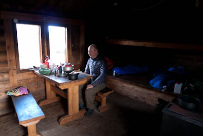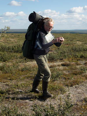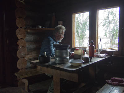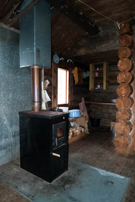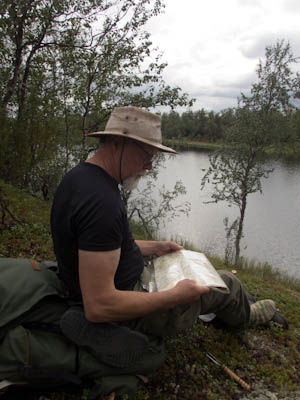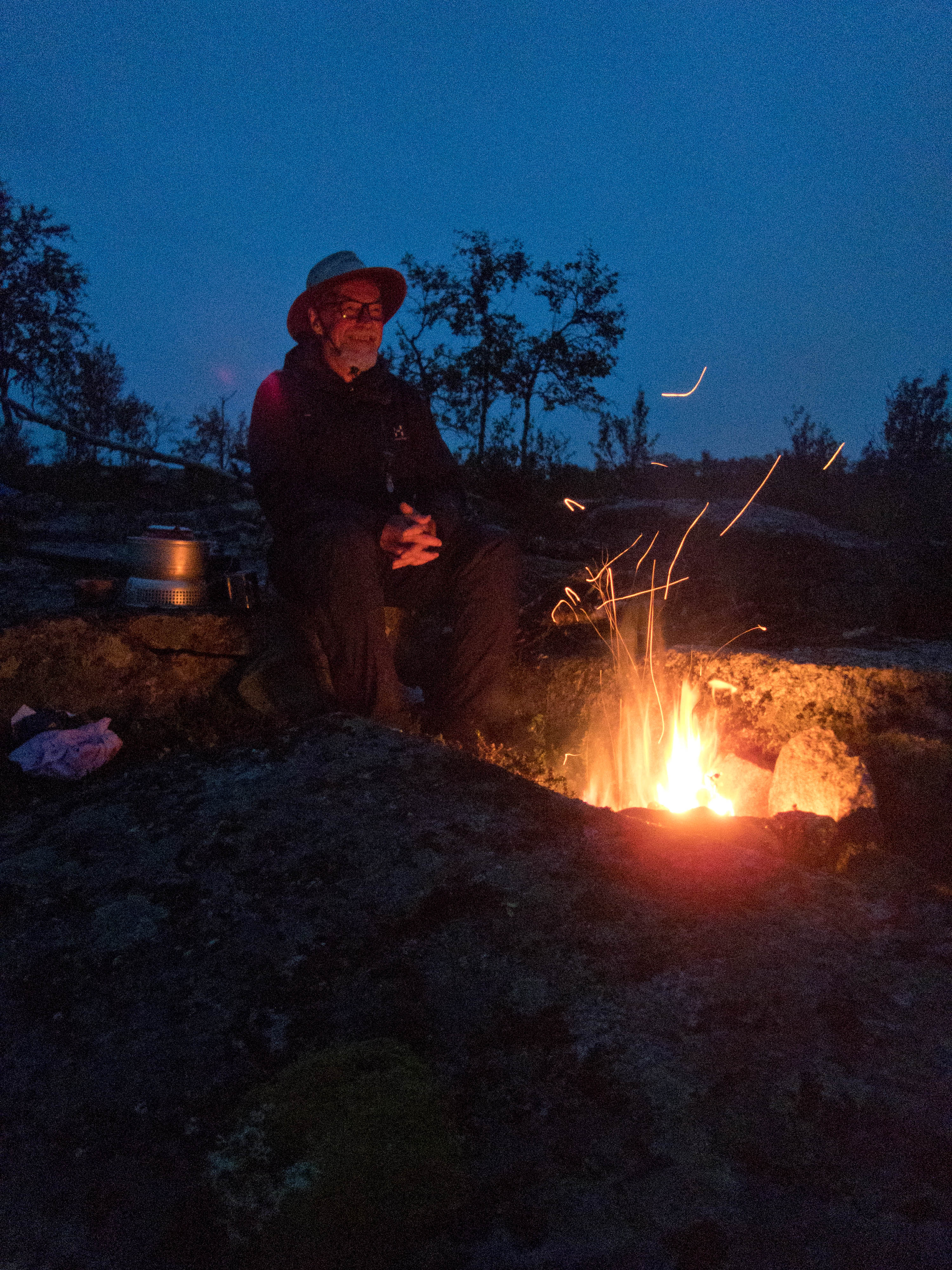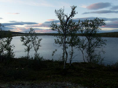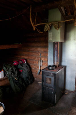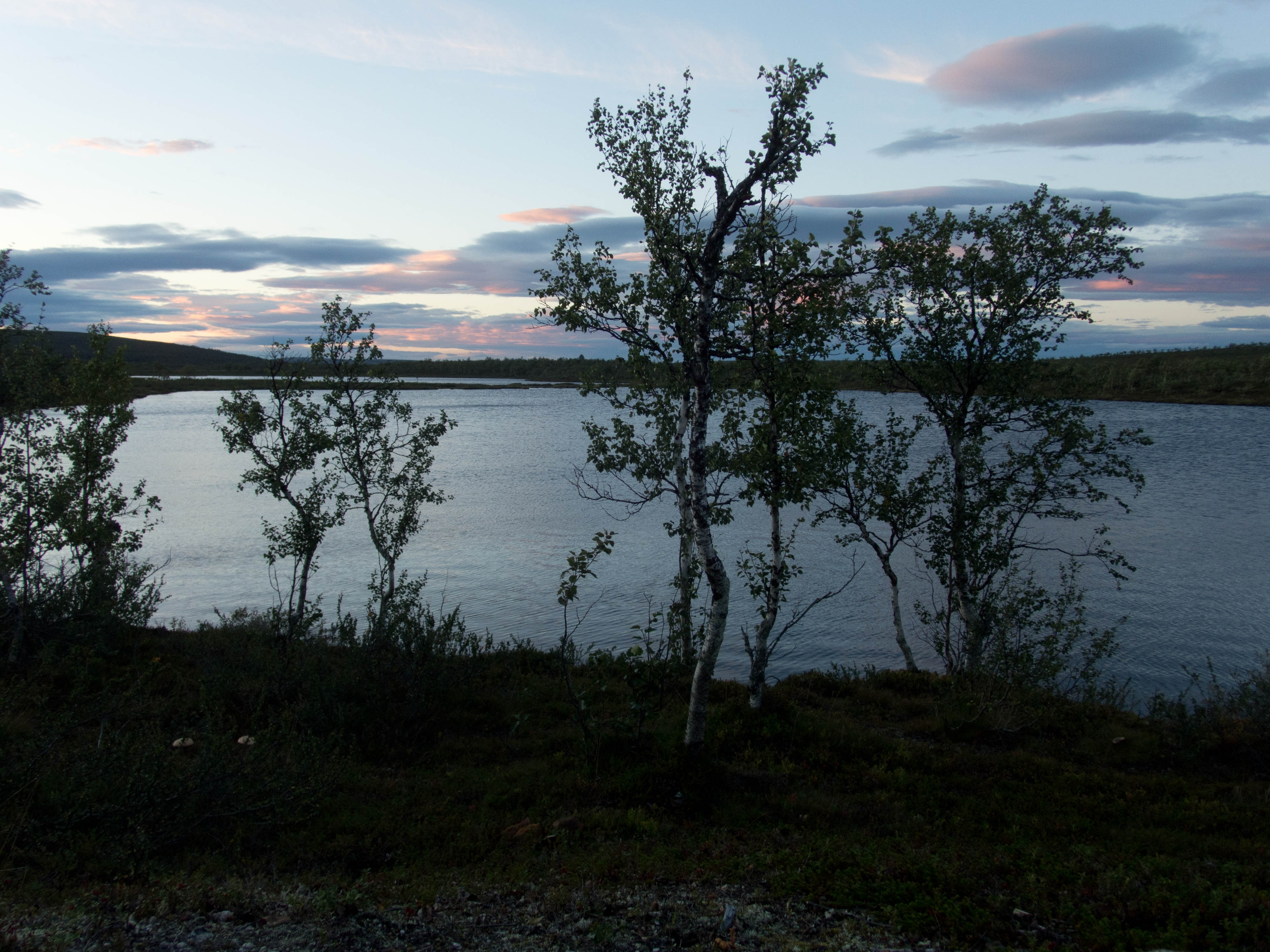 Vanha sanonta iltaruskosta osoittautui oikeaksi. Päivä valkeni sen verran harmaana, että lähdettiin liikkeelle sadevarusteissa. Suunnitelmissa oli tehdä leiri johonkin Suukisvaaran lähistölle, josta sitten voitaisiin käydä huiputtamassa seuraavana päivänä. Matkalla avautui näkymä kunnioitusta herättävälle tunturijonolle kaukaisuudessa. Päätimme poiketa Lenkihaan autiotuvalle ruokaa laittamaan. Siistissä kunnossa oli tämäkin tupa. Vanhat kunnon lauteet. Mistä johtunee, että tupien edustalla kasvaa melkein aina maitohorsmaa, jota ei maastossa juuri muuten ole. Johtuneeko siitä, että portailta on heitetty aikojen saatossa paljon ravinteita tuvan edustalle. Ilmakuvan perusteella tuvan edustalla oleva järvi on melkoinen rutakko ja siltä se näyttää luonnossakin. Sai siitä kuitenkin ihan hyvää vettä ruuan laittoon. Tuvalta matka jatkui soita väistellen kohti Allavaraksen eteläpuolella olevaa järveä, avokallioalueen vieressä. Molemmista Aiteenjoen alkuhaaroista päästiin yli saappaat jalassa. Patavaaran ja Allavaraksen rinteillä kasvoi paljon mustikkaa, marjoja parhaimmillaan. Vastatuuli hidasti matkantekoa. Heti, kun löysimme edes vähäisen suojan lounaistuulelta, istahdimme mässäilemään mustikoita. Yhdeltä istumalta sai melkein vatsan täyteen. Kun jatkoimme Allavaraksen länsipuolta alaspäin kohti järveä, olimme vähän ihmeissämme. Järvi näytti olevan paljon kauempana kuin kuvittelimme. Pian kuitenkin selvisi, että meidän järvemme oli aikamoisessa kuopassa ja ilmestyi näkyviin vasta loppujyrkällä. Maasto oli aika vaikeakulkuista ja avokalliot jatkuivat paikoitellen rantaan asti. Nuotiokin tehtiin kallion koloon. Kuin ihmeen kaupalla löysimme kelvollisen teltan paikan läheltä rantaa. Ilta oli tuulinen. Yhtään tuikkia ei nähty edes vastarannan tyvenessä. Yksi ärhäkkä hauki otti perhoon. Sekin vapautettiin, vaikka olisi ollut juuri sopivan kokoinen tikkukalaksi. Järven rannoilla oli ihan tolkuttomasti mustikoita, isoja kiiltäviä ja makeita. Niitä söimme kädestä suuhun varmaan litran mieheen.