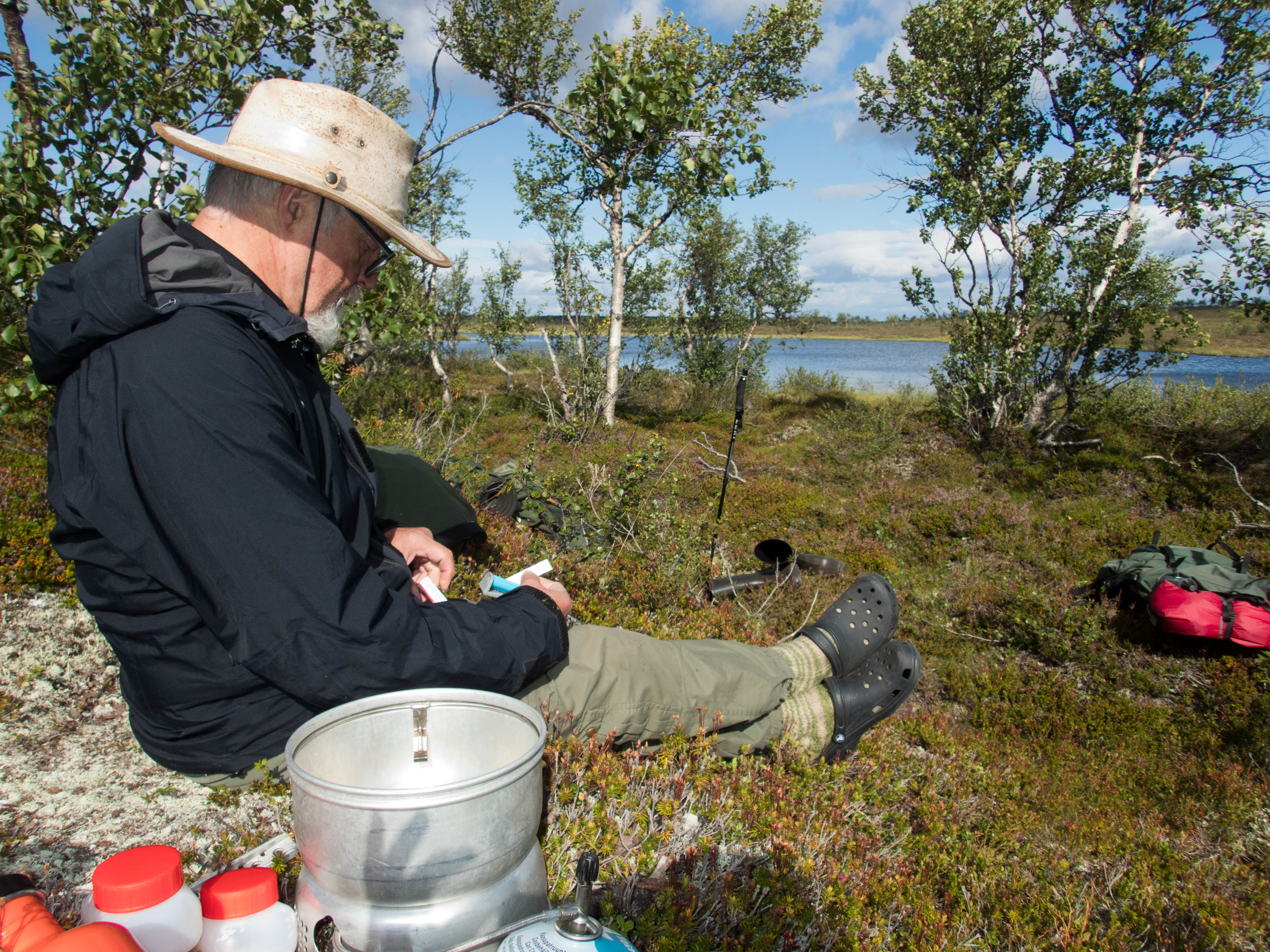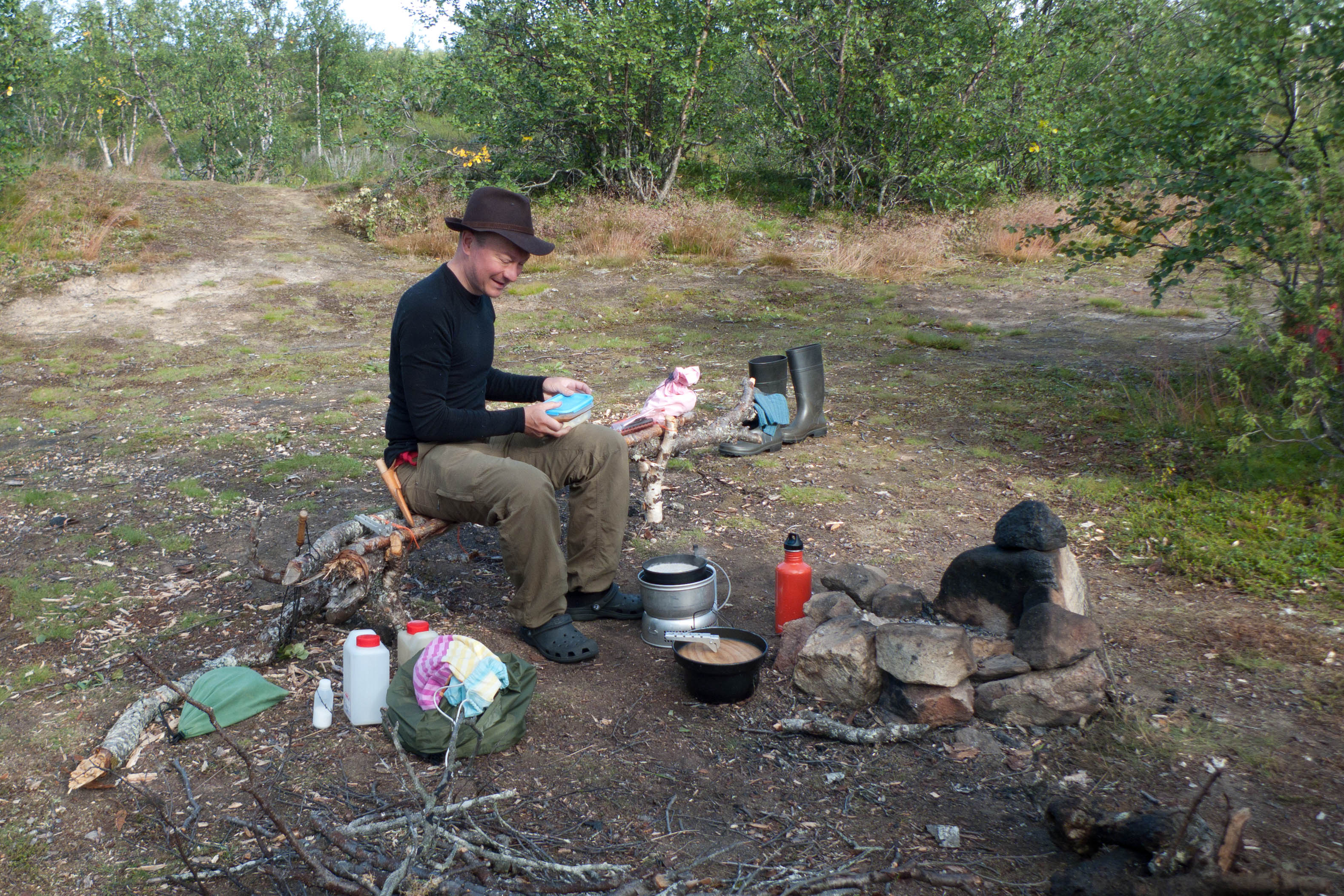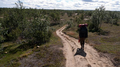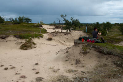 Ilmojen puolesta ihan hyvä reissu. Parina iltana vähän sataa ripautteli, mutta suurin osa reissusta saatiin kävellä ilman sadeasuja. Tuuli haittas pikkasen pehokalastusta ja kalan saanti ylipäätään oli kehnoa. Aika suuri osa matkasta mentiin mönkkäriuraa myöten. Ei sitä väkisin pusikkoon mene, jos on valmis polku. Maisemasta jäivät parhaiten mieleen laajat hiekkaharjut.